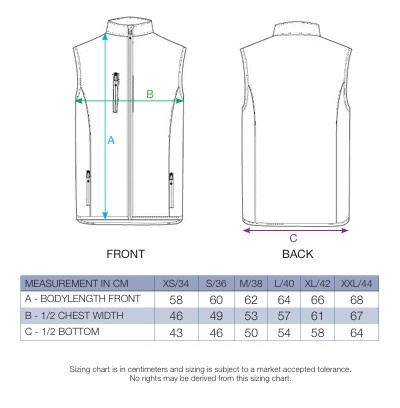 • De bodywarmers zijn leverbaar in heren en dames modellen.